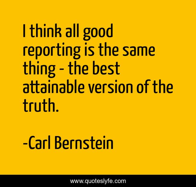 This page presents the quote "I think all good reporting is the same thing - the best attainable version of the truth.". Author of this quote is Carl Bernstein. This quote is about good, think, truth,.