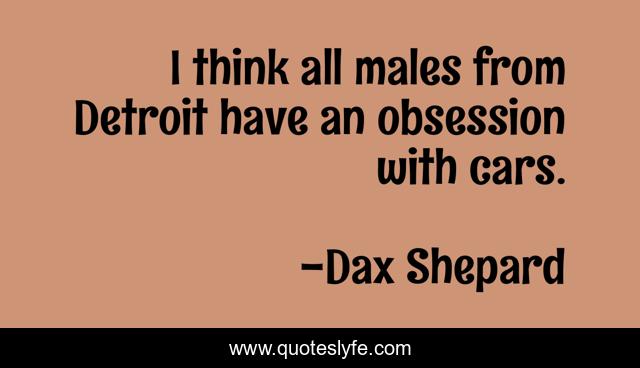 This page presents the quote "I think all males from Detroit have an obsession with cars.". Author of this quote is Dax Shepard. This quote is about i think, obsession, think,.