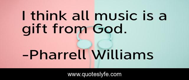 This page presents the quote "I think all music is a gift from God.". Author of this quote is Pharrell Williams. This quote is about god, think, gift,.
