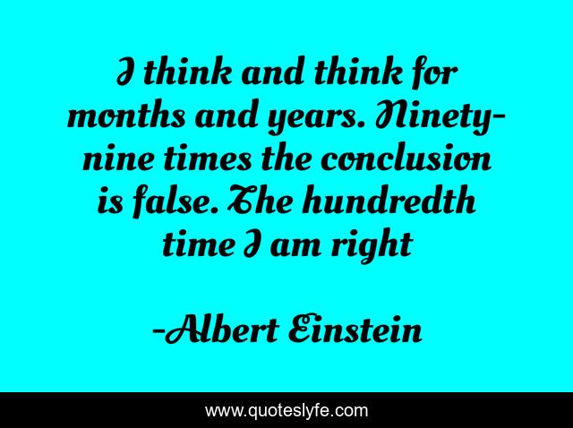 This page presents the quote "I think and think for months and years. Ninety-nine times the conclusion is false. The hundredth time I am right". Author of this quote is Albert Einstein. This quote is about science, technology,.