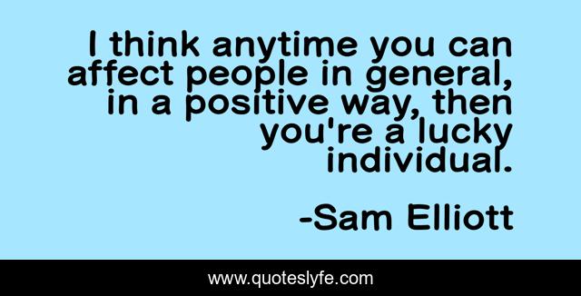 This page presents the quote "I think anytime you can affect people in general, in a positive way, then you're a lucky individual.". Author of this quote is Sam Elliott. This quote is about think, people,.
