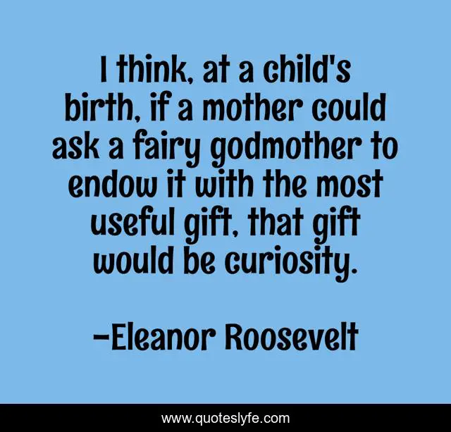 This page presents the quote "I think, at a child's birth, if a mother could ask a fairy godmother to endow it with the most useful gift, that gift would be curiosity.". Author of this quote is Eleanor Roosevelt. .