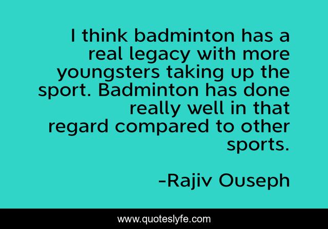 "Rajiv Ouseph Quotes." Quoteslyfe.com, 2025. Fri. 05 Dec. 2025. <https://www.quoteslyfe.com/quote/I-think-badminton-has-a-real-legacy-289178>.