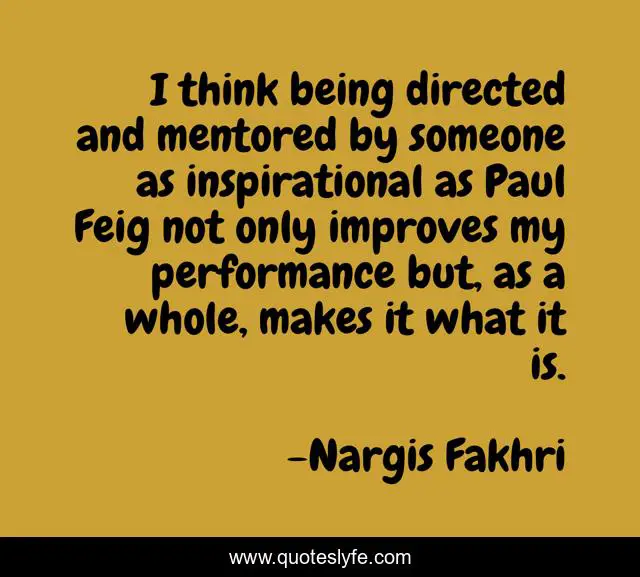 This page presents the quote "I think being directed and mentored by someone as inspirational as Paul Feig not only improves my performance but, as a whole, makes it what it is.". Author of this quote is Nargis Fakhri. This quote is about being, performance, think,.