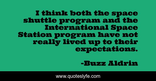 This page presents the quote "I think both the space shuttle program and the International Space Station program have not really lived up to their expectations.". Author of this quote is Buzz Aldrin. This quote is about think, up, expectations,.