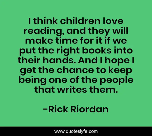 This page presents the quote "I think children love reading, and they will make time for it if we put the right books into their hands. And I hope I get the chance to keep being one of the people that writes them.". Author of this quote is Rick Riordan. This quote is about love, hope, affection, time,.
