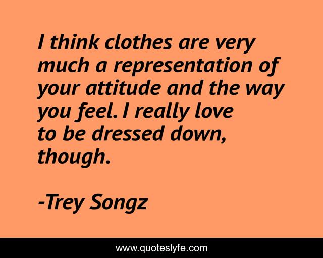 This page presents the quote "I think clothes are very much a representation of your attitude and the way you feel. I really love to be dressed down, though.". Author of this quote is Trey Songz. This quote is about love, think, affection, clothes,.