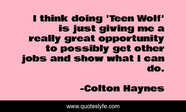 This page presents the quote "I think doing 'Teen Wolf' is just giving me a really great opportunity to possibly get other jobs and show what I can do.". Author of this quote is Colton Haynes. This quote is about giving, great, opportunity,.