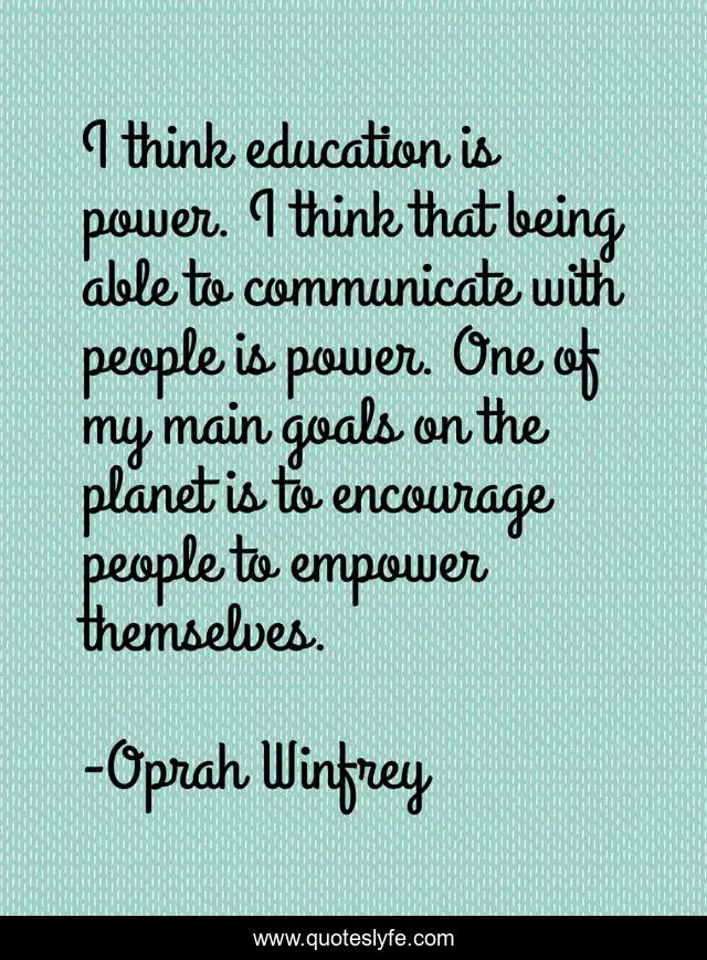 "Oprah Winfrey Quotes." Quoteslyfe.com, 2025. Fri. 05 Dec. 2025. <https://www.quoteslyfe.com/quote/I-think-education-is-power-I-think-268049>.