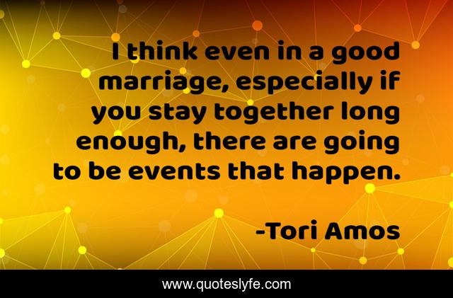 This page presents the quote "I think even in a good marriage, especially if you stay together long enough, there are going to be events that happen.". Author of this quote is Tori Amos. This quote is about good, together, long,.