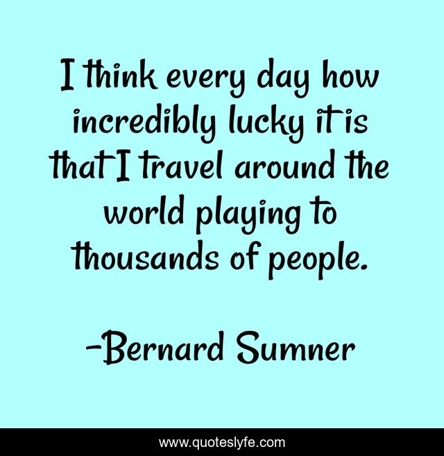 This page presents the quote "I think every day how incredibly lucky it is that I travel around the world playing to thousands of people.". Author of this quote is Bernard Sumner. This quote is about world, day, people,.