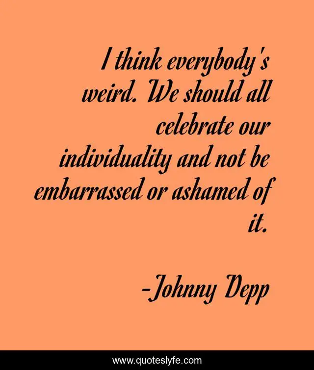 This page presents the quote "I think everybody's weird. We should all celebrate our individuality and not be embarrassed or ashamed of it.". Author of this quote is Johnny Depp. This quote is about individuality, weird, johnny-depp,.