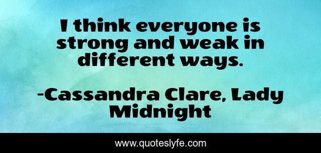 "Cassandra Clare, Lady Midnight Quotes." Quoteslyfe.com, 2025. Fri. 05 Dec. 2025. <https://www.quoteslyfe.com/quote/I-think-everyone-is-strong-and-weak-246563>.