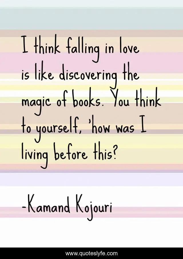 I think falling in love is like discovering the magic of books. You think to yourself, 'how was I living before this?