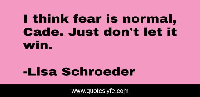 "Lisa Schroeder Quotes." Quoteslyfe.com, 2025. Sat. 06 Dec. 2025. <https://www.quoteslyfe.com/quote/I-think-fear-is-normal-Cade-Just-45262>.