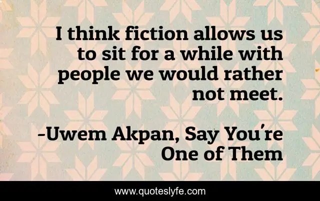 This page presents the quote "I think fiction allows us to sit for a while with people we would rather not meet.". Author of this quote is Uwem Akpan, Say You're One of Them. .