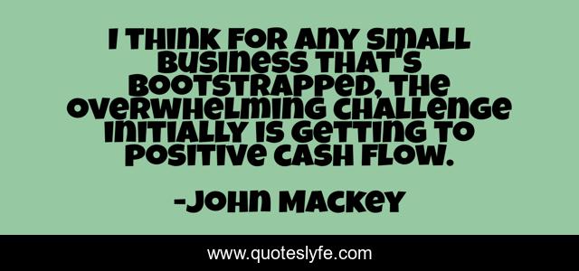 This page presents the quote "I think for any small business that's bootstrapped, the overwhelming challenge initially is getting to positive cash flow.". Author of this quote is John Mackey. This quote is about small, challenge, business,.