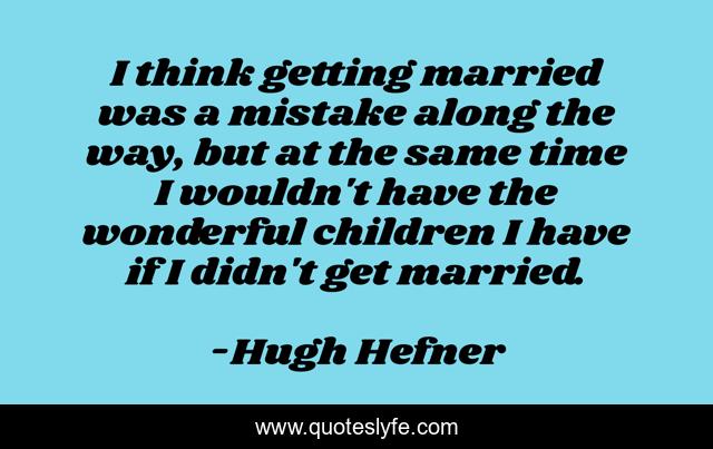 This page presents the quote "I think getting married was a mistake along the way, but at the same time I wouldn't have the wonderful children I have if I didn't get married.". Author of this quote is Hugh Hefner. This quote is about mistake, think, children,.