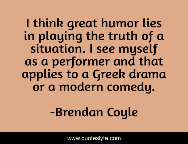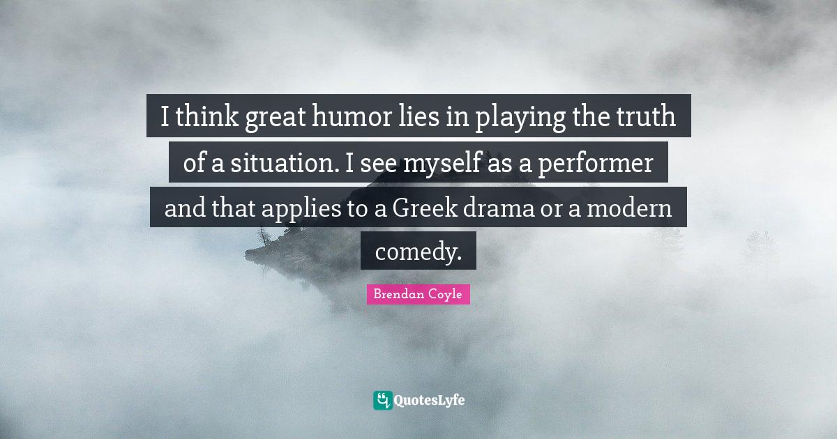 This page presents the quote "I think great humor lies in playing the truth of a situation. I see myself as a performer and that applies to a Greek drama or a modern comedy.". Author of this quote is Brendan Coyle. This quote is about myself, great, truth,.