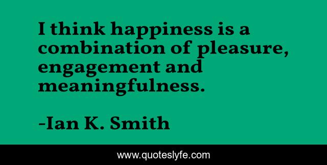 This page presents the quote "I think happiness is a combination of pleasure, engagement and meaningfulness.". Author of this quote is Ian K. Smith. This quote is about pleasure, engagement, think,.