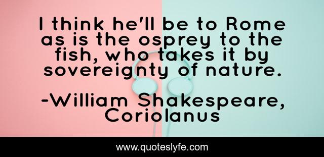 This page presents the quote "I think he'll be to Rome as is the osprey to the fish, who takes it by sovereignty of nature.". Author of this quote is William Shakespeare, Coriolanus. .