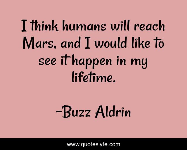 This page presents the quote "I think humans will reach Mars, and I would like to see it happen in my lifetime.". Author of this quote is Buzz Aldrin. This quote is about see, reach, think,.