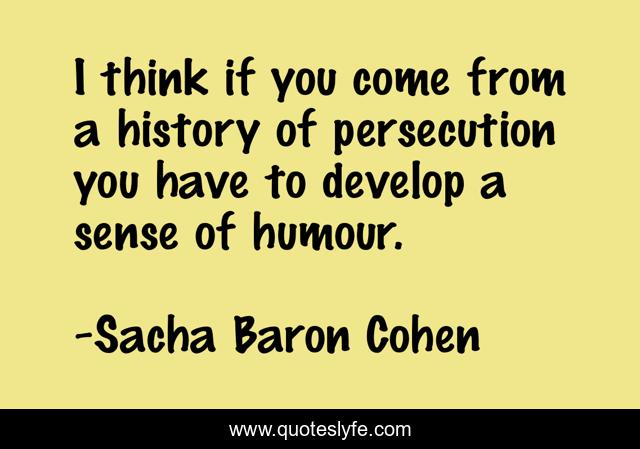 This page presents the quote "I think if you come from a history of persecution you have to develop a sense of humour.". Author of this quote is Sacha Baron Cohen. This quote is about think, humour,.