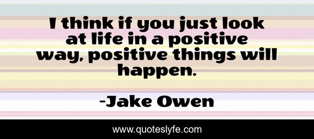 This page presents the quote "I think if you just look at life in a positive way, positive things will happen.". Author of this quote is Jake Owen. This quote is about life, think,.