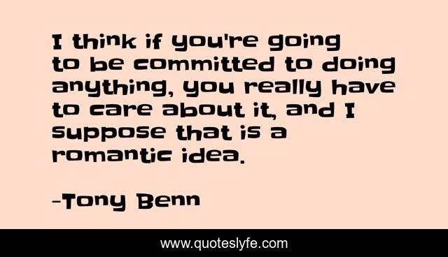 This page presents the quote "I think if you're going to be committed to doing anything, you really have to care about it, and I suppose that is a romantic idea.". Author of this quote is Tony Benn. This quote is about think, care,.
