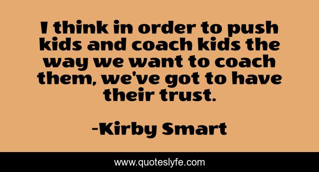 This page presents the quote "I think in order to push kids and coach kids the way we want to coach them, we've got to have their trust.". Author of this quote is Kirby Smart. This quote is about kids, think,.
