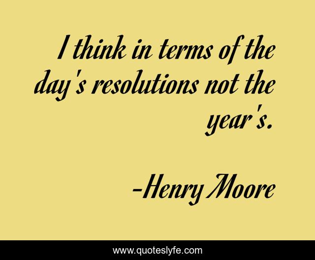 This page presents the quote "I think in terms of the day's resolutions not the year's.". Author of this quote is Henry Moore. .