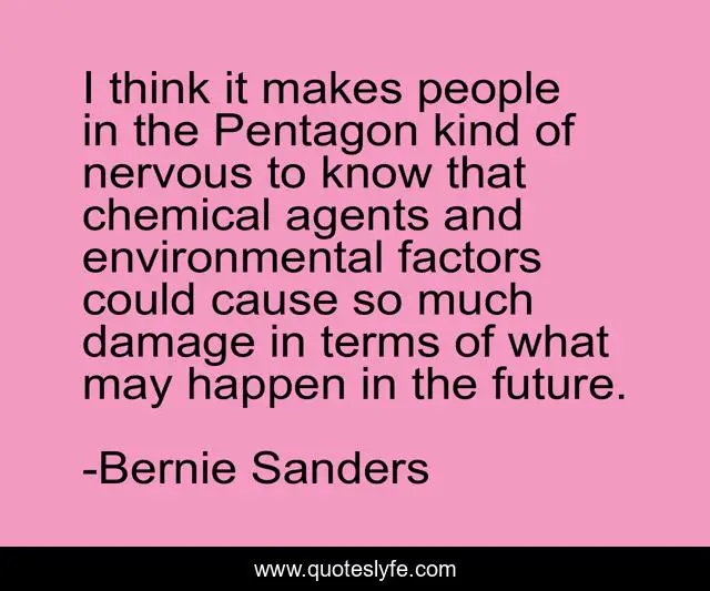 This page presents the quote "I think it makes people in the Pentagon kind of nervous to know that chemical agents and environmental factors could cause so much damage in terms of what may happen in the future.". Author of this quote is Bernie Sanders. This quote is about future, people,.