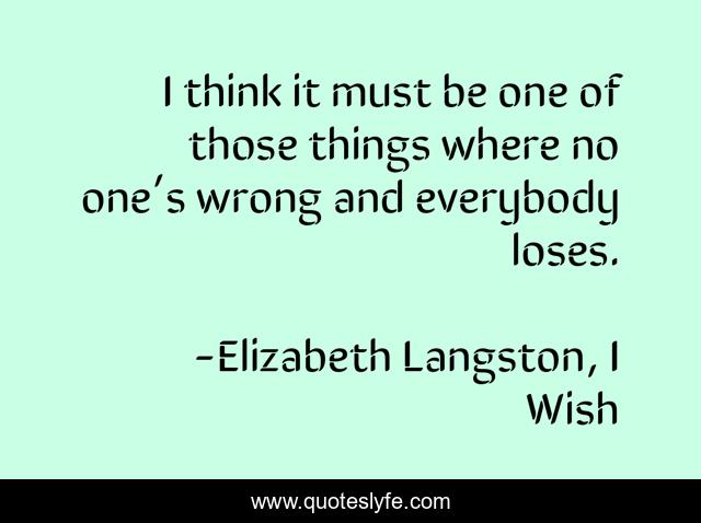 This page presents the quote "I think it must be one of those things where no one’s wrong and everybody loses.". Author of this quote is Elizabeth Langston, I Wish. This quote is about failure, separation,.