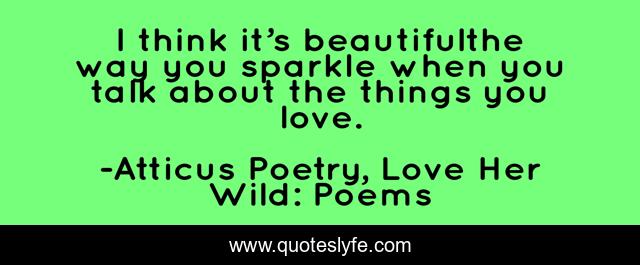This page presents the quote "I think it’s beautifulthe way you sparkle when you talk about the things you love.". Author of this quote is Atticus Poetry, Love Her Wild: Poems. This quote is about atticus, love, instagram, her, atticuspoetry, poetry, quotes, wild, poems,.
