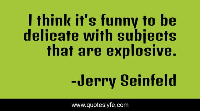 This page presents the quote "I think it's funny to be delicate with subjects that are explosive.". Author of this quote is Jerry Seinfeld. This quote is about i think, think, delicate,.