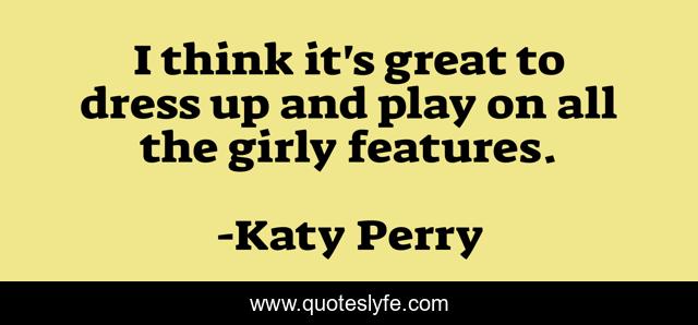 This page presents the quote "I think it's great to dress up and play on all the girly features.". Author of this quote is Katy Perry. This quote is about play, dress, think,.
