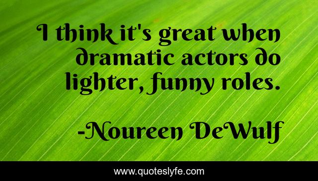This page presents the quote "I think it's great when dramatic actors do lighter, funny roles.". Author of this quote is Noureen DeWulf. This quote is about great, think, i think,.