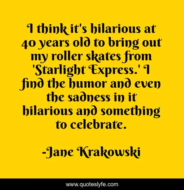 This page presents the quote "I think it's hilarious at 40 years old to bring out my roller skates from 'Starlight Express.' I find the humor and even the sadness in it hilarious and something to celebrate.". Author of this quote is Jane Krakowski. This quote is about sadness, think, celebrate,.