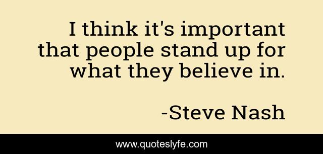 This page presents the quote "I think it's important that people stand up for what they believe in.". Author of this quote is Steve Nash. .