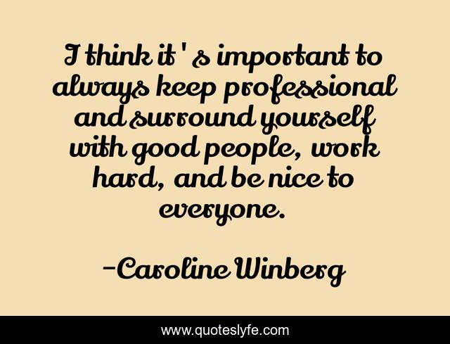 This page presents the quote "I think it's important to always keep professional and surround yourself with good people, work hard, and be nice to everyone.". Author of this quote is Caroline Winberg. This quote is about good, work hard, yourself,.