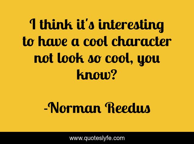 This page presents the quote "I think it's interesting to have a cool character not look so cool, you know?". Author of this quote is Norman Reedus. This quote is about character, think,.