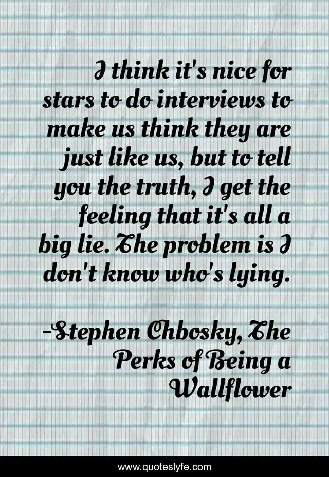 "Stephen Chbosky, The Perks of Being a Wallflower Quotes." Quoteslyfe.com, 2025. Sun. 07 Dec. 2025. <https://www.quoteslyfe.com/quote/I-think-it-s-nice-for-stars-245192>.