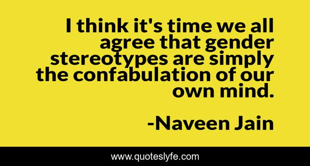 This page presents the quote "I think it's time we all agree that gender stereotypes are simply the confabulation of our own mind.". Author of this quote is Naveen Jain. This quote is about gender, mind, think,.