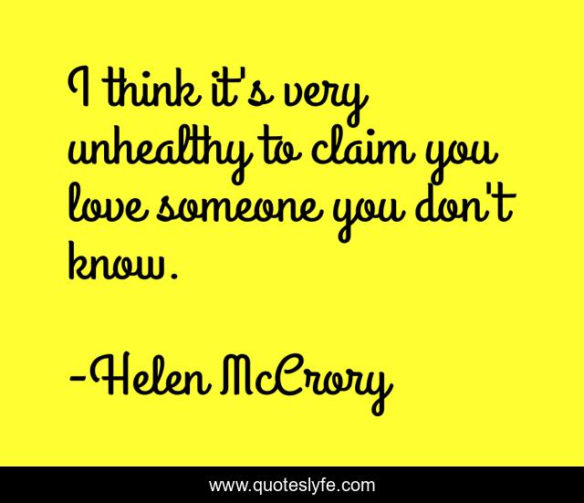 This page presents the quote "I think it's very unhealthy to claim you love someone you don't know.". Author of this quote is Helen McCrory. This quote is about strangers, loving,.