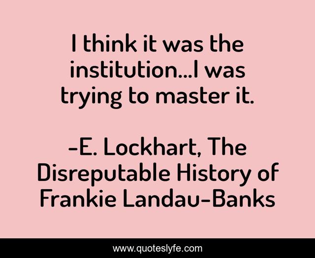 "E. Lockhart, The Disreputable History of Frankie Landau-Banks Quotes." Quoteslyfe.com, 2025. Sun. 07 Dec. 2025. <https://www.quoteslyfe.com/quote/I-think-it-was-the-institution-I-7817>.