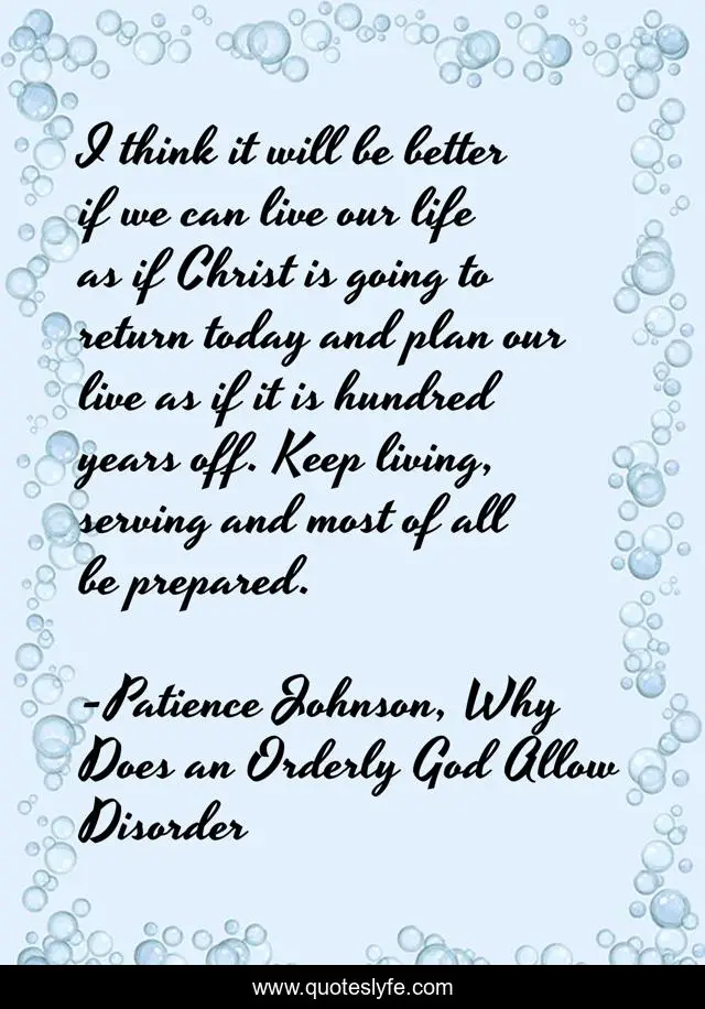 "Patience Johnson, Why Does an Orderly God Allow Disorder Quotes." Quoteslyfe.com, 2025. Fri. 05 Dec. 2025. <https://www.quoteslyfe.com/quote/I-think-it-will-be-better-if-47897>.