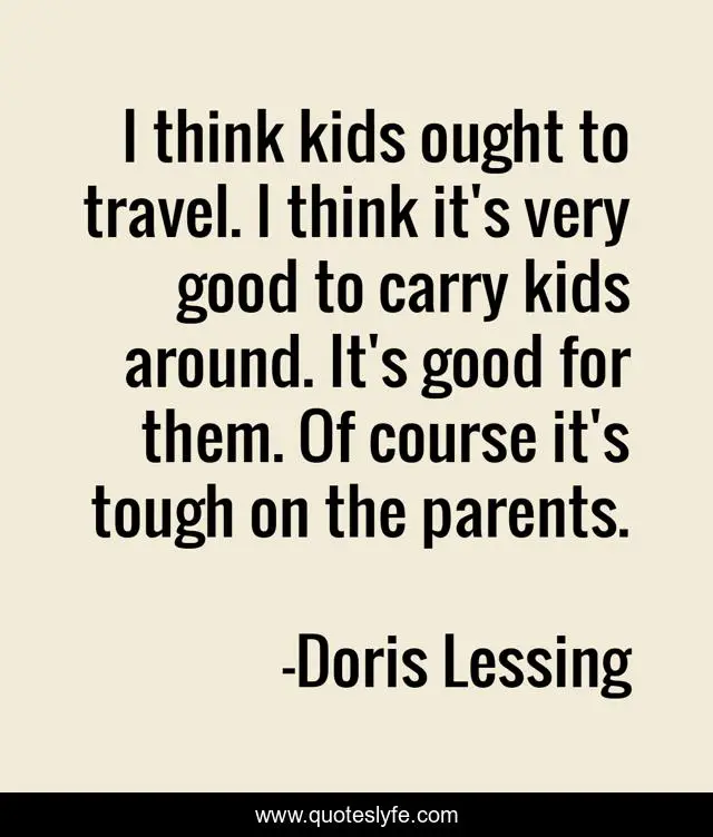 This page presents the quote "I think kids ought to travel. I think it's very good to carry kids around. It's good for them. Of course it's tough on the parents.". Author of this quote is Doris Lessing. This quote is about good, parents, think,.