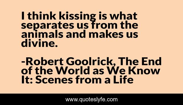 "Robert Goolrick, The End of the World as We Know It: Scenes from a Life Quotes." Quoteslyfe.com, 2025. Fri. 05 Dec. 2025. <https://www.quoteslyfe.com/quote/I-think-kissing-is-what-separates-us-251812>.