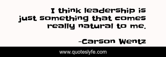 This page presents the quote "I think leadership is just something that comes really natural to me.". Author of this quote is Carson Wentz. This quote is about me, natural, think,.