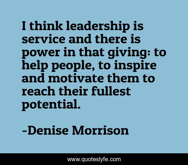 This page presents the quote "I think leadership is service and there is power in that giving: to help people, to inspire and motivate them to reach their fullest potential.". Author of this quote is Denise Morrison. This quote is about leadership, inspire, service,.